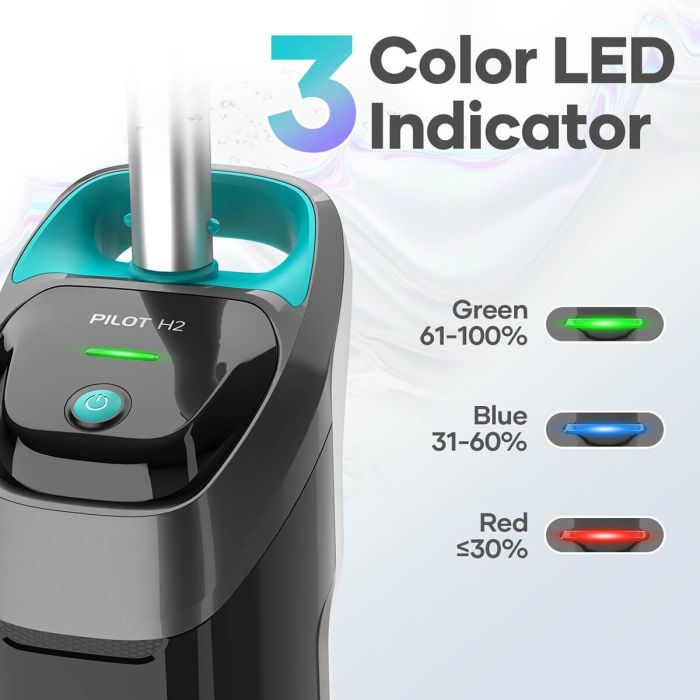 • LED indikatorji: Pilot H2 komunicira stanje enote prek 4-barvnega LED indikatorja, tako da vedno ohranjate nadzor nad čiščenjem.