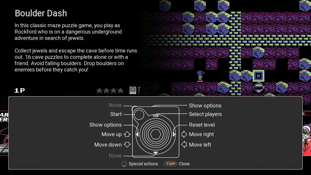 Igrajte eno od 25 vgrajenih iger, med katerimi so: Lee, Berzerk, Millipede, Miner 2049er, M.U.L.E, Star Raiders II, in svoj napredek kadar koli shranite v eno od štirih shranjevalnih mest za vsako igro ali celo zaustavite igro in se vrnite nazaj, kar vam pomaga pri premagovanju najtežjih delov – funkcija, ki je nova za THE400 Mini.