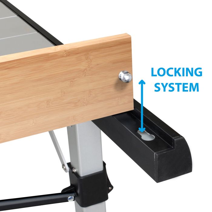 Elegantna različica modela Titanium Quadra NG. Aluminijasta kotalna plošča s končnimi letvicami iz pravega bambusovega lesa in vgrajeno nivelirko za popolno delovanje novega sistema za niveliranje 90° Adjustar. Z vrečko za pakiranje.