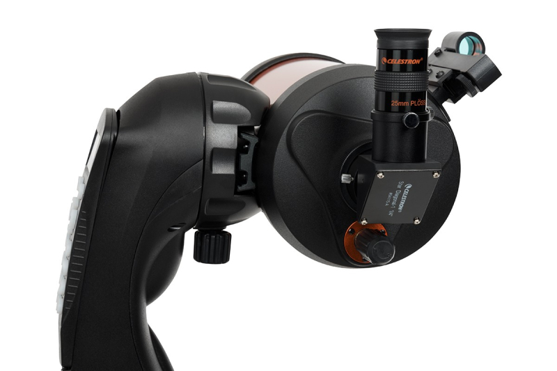 5-palcni Schmidt-Cassegrainov teleskop, vnaprej sestavljen jekleni stativ z vgrajeno poljsko višino, plošca za shranjevanje dodatkov, racunalniško krmiljena montaža Nexstar 4/5SE z rocnim krmilnikom NexStar, iskalnik StarPointer z rdeco piko, 25 mm okular, 1,25″ zenitna prizma, sprostitev fotoaparata