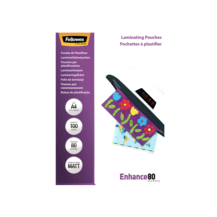 Fellowes žepki za plastificiranje A4, mat, 80 mic, 100 kosov