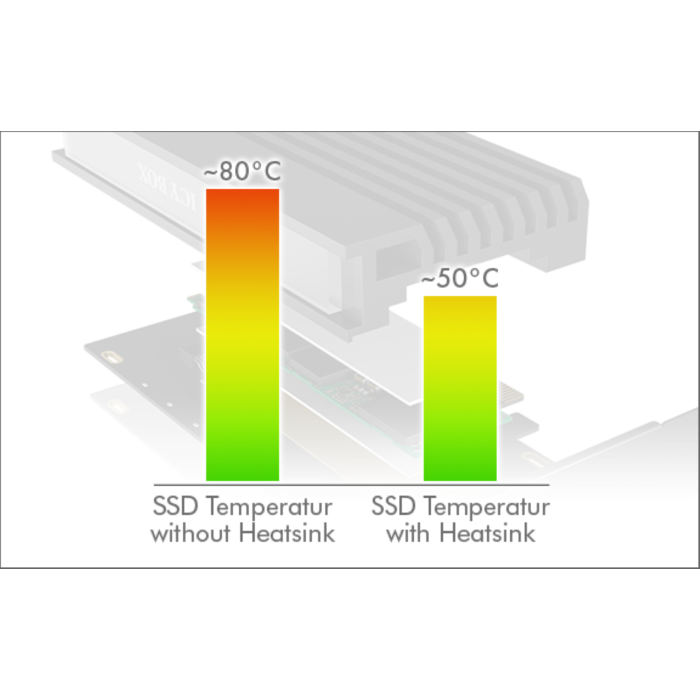 IB-PCI214M2-HSL ponuja dovolj hladilne moči s priloženimi toplotnoprevodnimi blazinicami in velikim hladilnikom, tako da lahko ves čas uživate v polni moči svojega M.2 SSD.