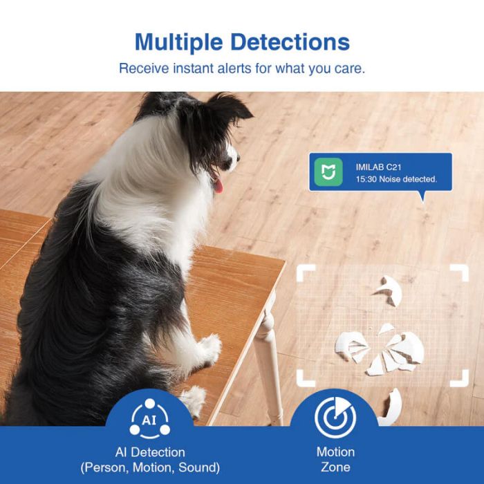 Prejemajte obvestila in enostavno delite nadzor z družino preko aplikacije v nujnih primerih. Nastavite območje zaznavanja za C21, da spremlja določena področja.