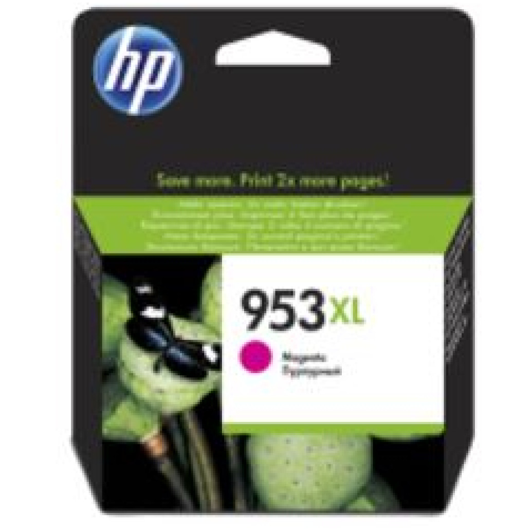 HP 953XL. Vrsta: Original, Vrsta črnila: Črnilo na osnovi pigmenta, Barve tiska: Magenta. Širina: 114 mm Globina: 126 mm Višina: 25 mm