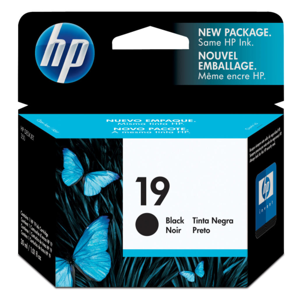 Črna tiskalna kartuša HP 19 zagotavlja profesionalne tiske tudi na navadnem papirju. Posebej zasnovan za optimalno zanesljivost pri spreminjajočih se višinah in temperaturah je idealen za poslovne potnike. Črna tiskalna kartuša HP 19 v kombinaciji s tiskalno kartušo HP 49 omogoča tribarvne briljantne barvne slike in ostro besedilo.