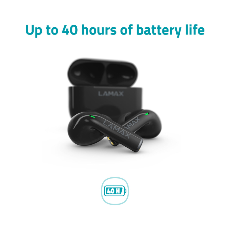 Nobenih kablov? Super. Ves čas iskati polnilnik? Tega nočeš in mi to vemo. Zato LAMAX Clips1 zdržijo do 40 ur. 8 ur oddelajo, ko jih vzameš iz ohišja, ki jih napolni kar štirikrat – kjerkoli in brez vtičnice. Cel delovni teden ali nekajdnevni izlet se ti sploh ni treba ukvarjati z baterijo.