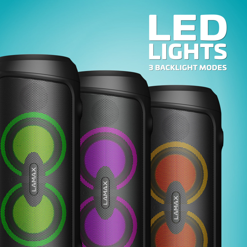 Celotna sprednja stran zvočnika je opremljena z LED osvetlitvijo ozadja s tremi načini za popolno vzdušje vsakega dogodka.