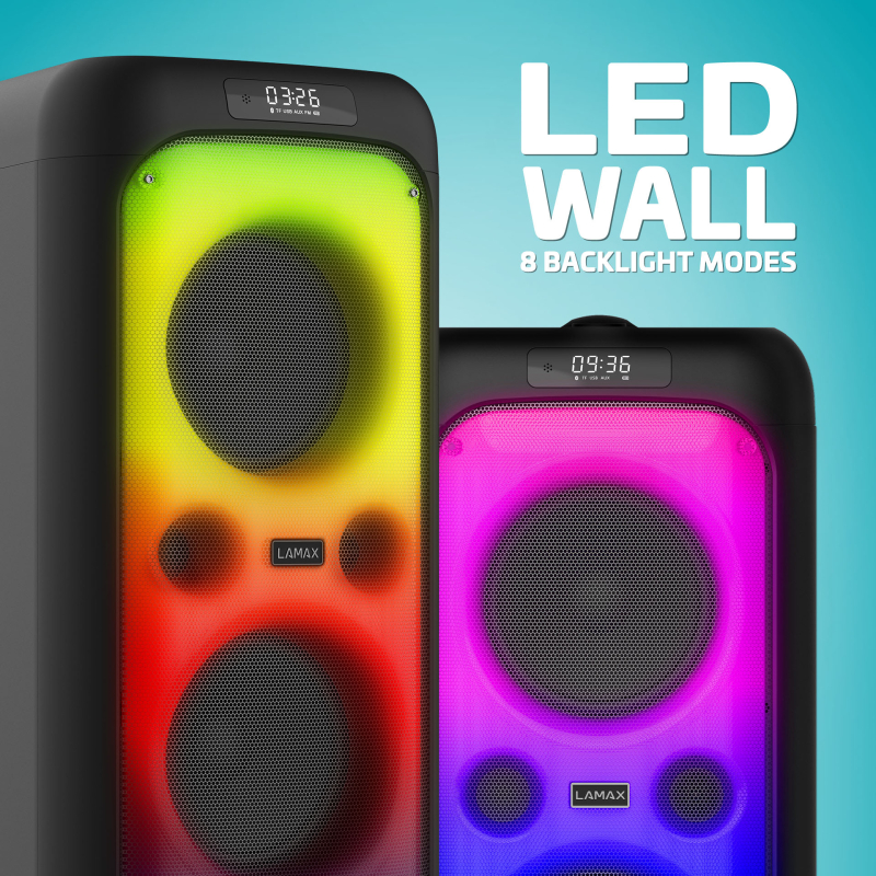 En pogled in jasno je, da je na prizorišče prišel kralj. Ko zazvenijo popolni ritmi, ni dvoma, kdo vlada zabavi. LAMAX PartyKing1 Plus ima vse, kar potrebujete, da vsak dogodek spremenite v doživetje leta. Raje povabite tudi sosede, da se ne bodo pritoževali, saj bodo dvopasovni zvočniki začeli razganjati največje hite s 100 W moči. Ta zvočnik podpira več formatov in tudi vhodov, uglasi pa se celo na radio FM, zato boste našli nekaj za ljubitelje vseh žanrov, ne glede na to, ali ste na družinskem srečanju ali razgibavate telesa med športom. Nastavljiv izenačevalnik s tehnologijo BeatBass® poskrbi za pravi zvok, do 8 učinkov LED pa poskrbi za dodatno vibracijo. Zvočnik lahko prek povezave Bluetooth 5.3 povežete z različnimi napravami, z enim polnjenjem pa bo predvajal do 14 ure. Ni dovolj za vas? Potem dodajte še zaslon LED, True Wireless Stereo ter možnost priključitve kitare in mikrofona že takoj po odprtju. Ko boste s prijatelji izvajali karaoke, jih boste lahko takoj posneli.