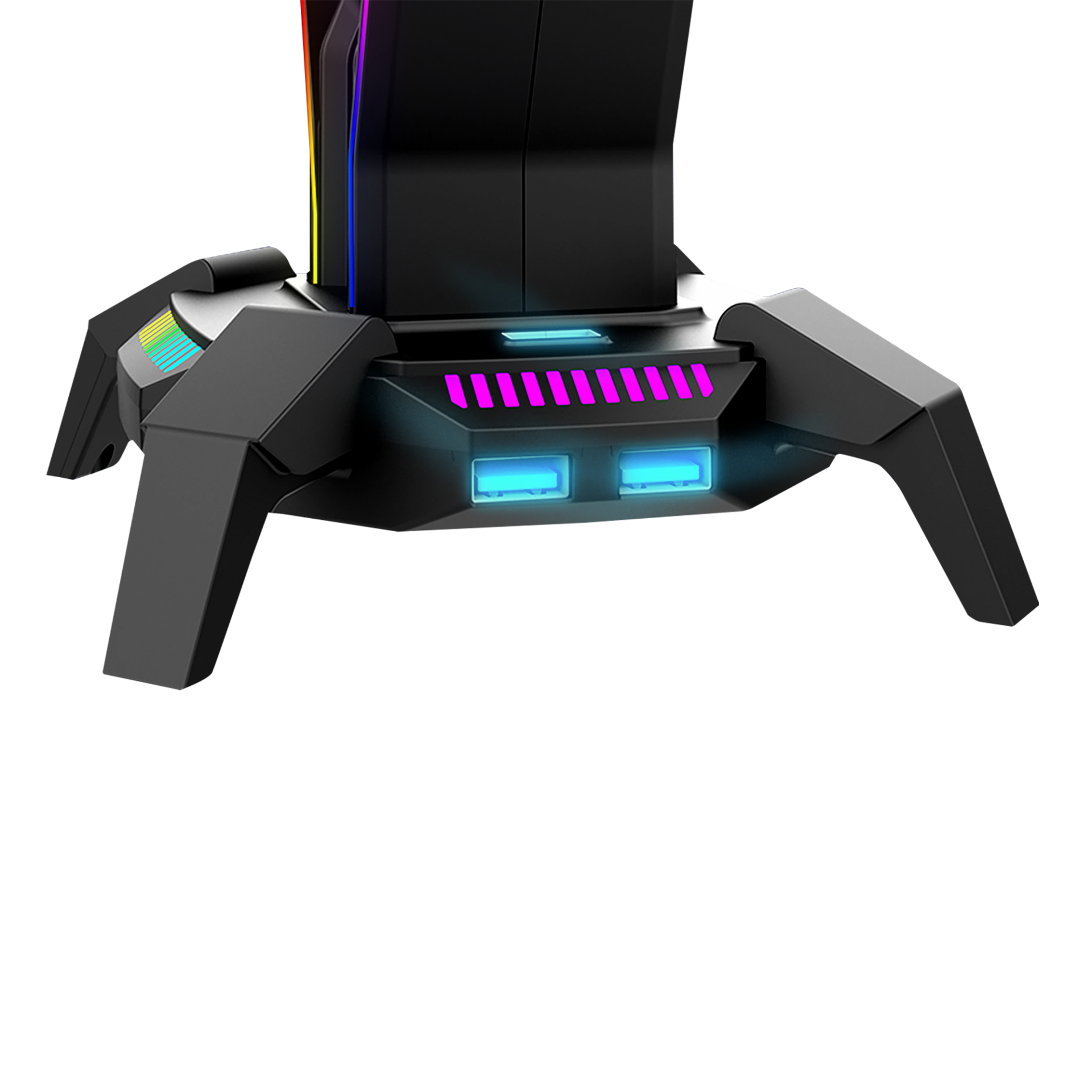 Marvo HZ-10 je stojalo za slušalke z RGB osvetlitvijo in gumbom za nadzor svetlobe. Napaja se prek USB-ja z 1-metrskim kablom ter vključuje tri USB 2.0 vhode in avdio priključek. Dimenzije izdelka so 130 x 130 x 260 mm.