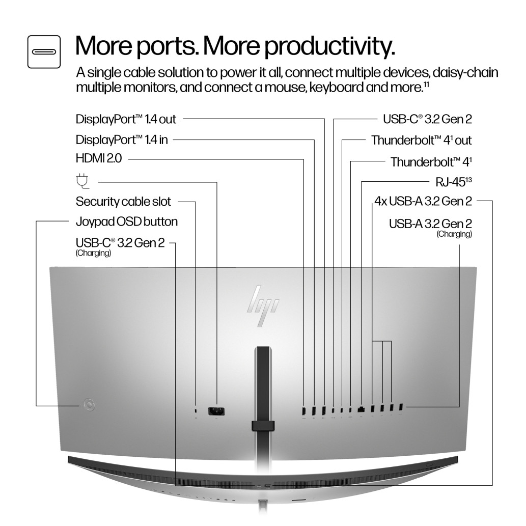 Monitor HP 86,4 cm (34,0″) 734pm 3440×1440 Curved konferenca 120Hz IPS 5ms HDMI DisplayPort Thunderbolt4 USB-C 100W DP-Out 5xUSB3.2 USB-C-Out HAS Kamera Zvočniki DCI-P3-99% RJ45 KVM HDR400