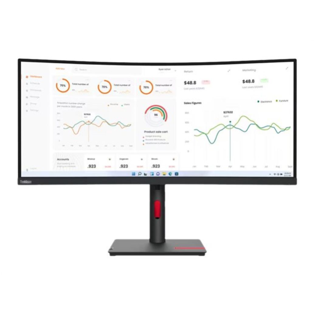 Monitor Lenovo 86,4 cm (34,0″) T34w-30 3440×1440 Curved VA 4ms HDMI DisplayPort USB-C 75W 4xUSB3.2 HAS sRGB99% RJ45 ThinkVision