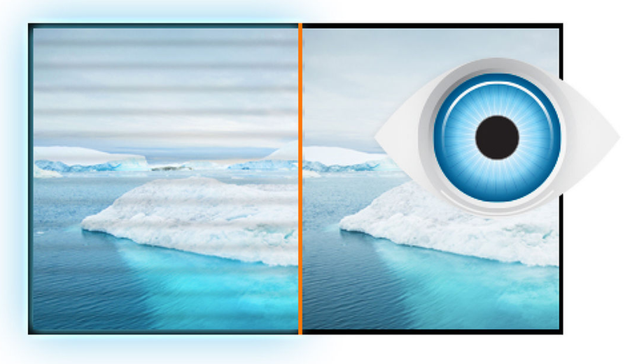 Kot vsi vemo, večurno gledanje v zaslon monitorja na dan, še posebej od blizu, povzroča utrujenost oči. Ta učinek je veliko močnejši pri računalniških zaslonih kot pri televizijski opremi. Eden od dejavnikov, odgovornih za ta pojav, je modra svetloba, ki jo oddaja zaslon. Zato zmanjšanje količine modre svetlobe omogoči, da se naše oči med dolgim delom z računalniškim zaslonom počutijo manj utrujene. To smo dosegli s prilagoditvijo svetlosti in barvne temperature monitorja z novo funkcijo, imenovano “Zmanjšanje modre svetlobe”, ki je zlahka dostopna prek OSD menija monitorja.