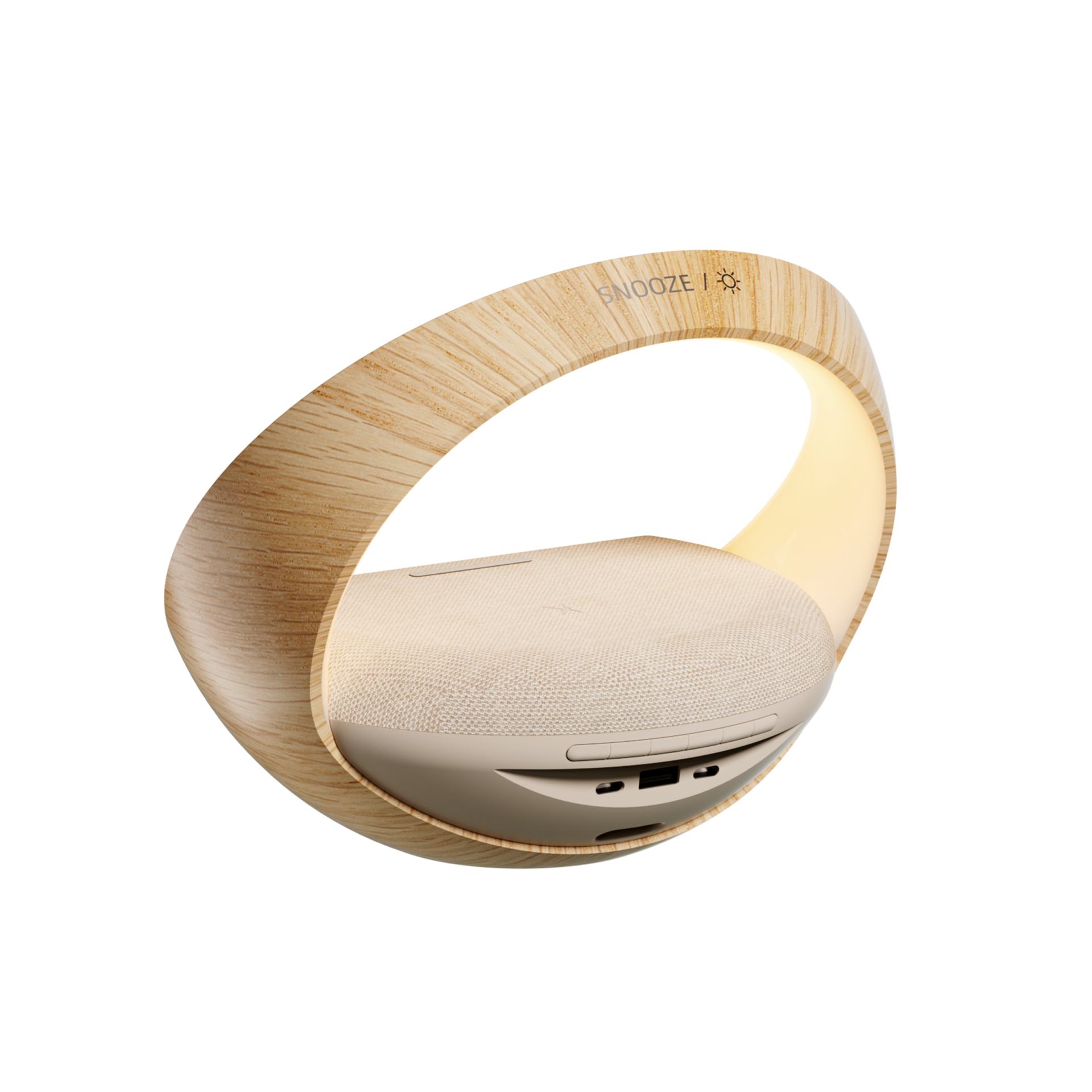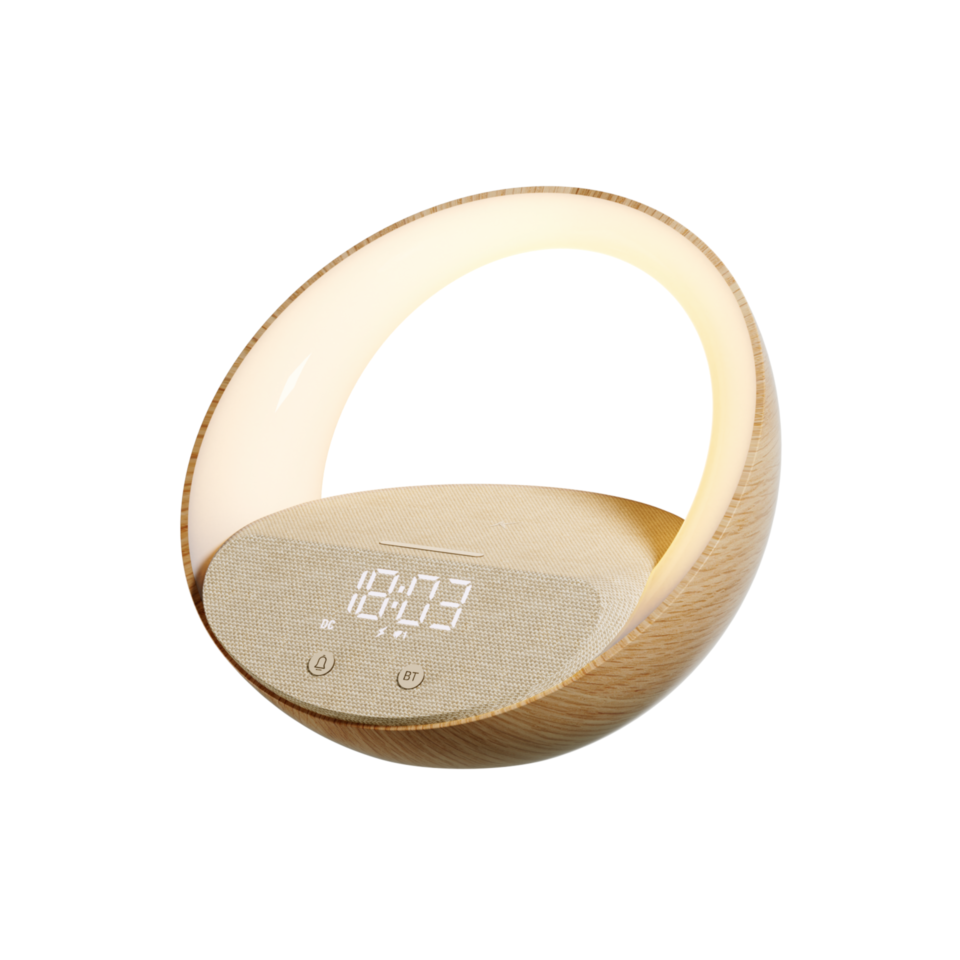 Ta naprava ni le lučka – je tudi budilka z uro, Bluetooth zvočnik za predvajanje glasbe in brezžični polnilec za pametni telefon, ki podpira hitro polnjenje do 15 W. Elegantna ukrivljena oblika omogoča, da pametni telefon varno leži na površini, medtem ko se polni in predvaja glasbo ali prikazuje čas.