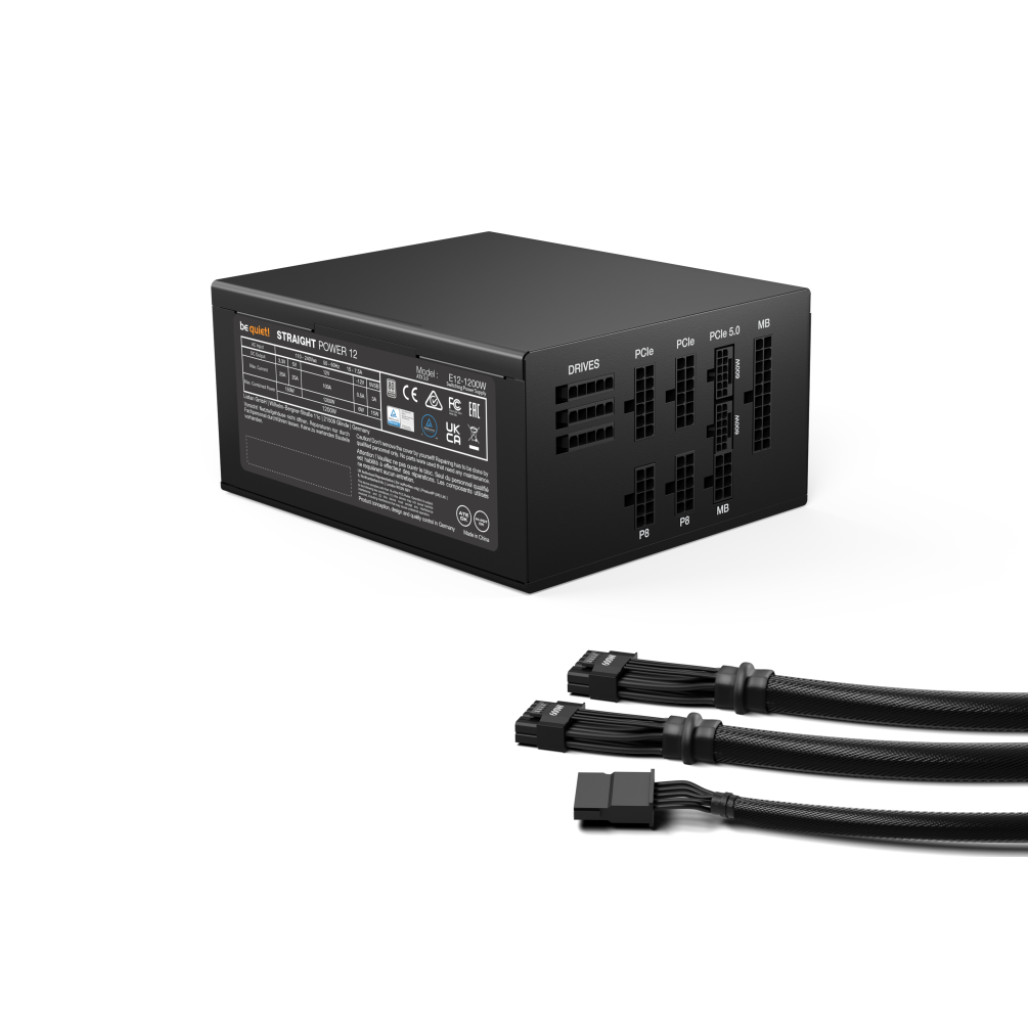 Bodi tiho! Straight Power 12. Skupna moč: 1200 W AC vhodna napetost: 110-240 V Maksimalni tok: 1270 W. Vtič za matično ploščo: 20+4 pinski ATX, dolžina napajalnega kabla za matično ploščo: 60 cm, tip kabla: modularni. Namen: osebni računalnik, napajalna enota (PSU) Faktor oblike: ATX, certifikat 80 Plus: 80 PLUS Platinum. Barva izdelka: Črna, Hlajenje: Aktivno, Premer ventilatorja: 13,5 cm. Priloženi kabli: CPU, SATA.