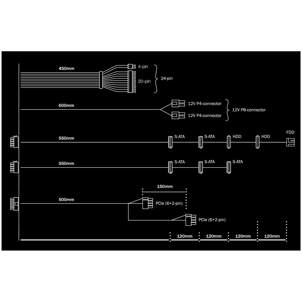 PSU je opremljen s pretvorbo med DC in DC za natančno regulacijo napetosti, tudi v težkih navzkrižnih obremenitvah. To zagotavlja zanesljivo delovanje in omogoča pripravo nove generacije procesorjev in grafičnih kartic.