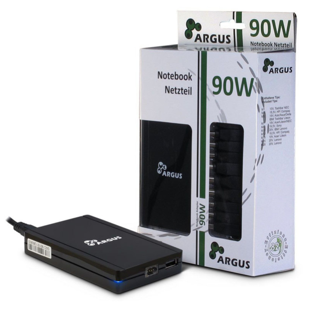 Univerzalni napajalnik za prenosnike Inter-Tech Argus USN90-UCB lahko napaja večino prenosnikov na trgu. Priloženih je 10 različnih nastavkov. S tankim dizajnom ga lahko pospravite skoraj v vsako torbo za prenosnike. Omogoča samodejno spreminjanje napetosti glede na izbran nastavek. Dodatno je Argus USN90-UCB opremljen z USB priključkom za polnjenje USB naprav, kot so pametni telefoni in tablice. Ponuja več kot 83% učinkovitosti.