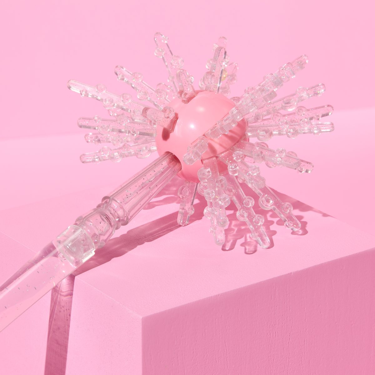 Predstavljamo vam Glindino mehurčkasto palico, avtentično repliko čarobne palice Glinde, dobre čarovnice, iz muzikala Wicked. Ta čarobna palica, daljša od Glindine originalne vadbene palice, meri približno 56 cm, ko je sestavljena. Njena zasnova vključuje bleščeče detajle, ki spominjajo na zvezdnat snežinko, kar popolnoma pooseblja čarovnijo, milino in priljubljenost Glinde.
