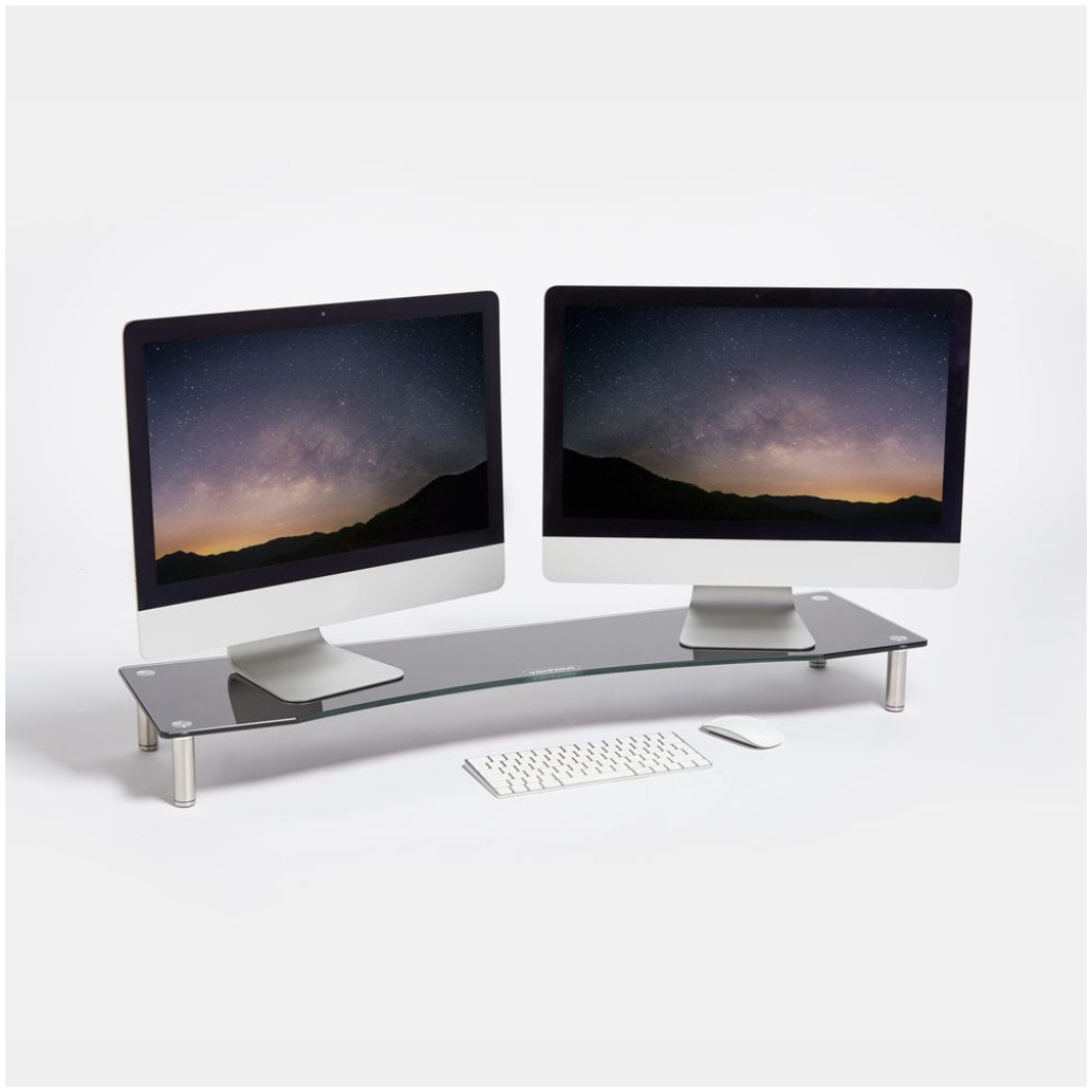 Izjemno dolg stekleni podstavek za monitor, ki je opremljen z gumijastimi nogicami za zaščito mize in preprečevanje zdrsa, bo zmanjšal obremenitev vratu in povečal produktivnost.