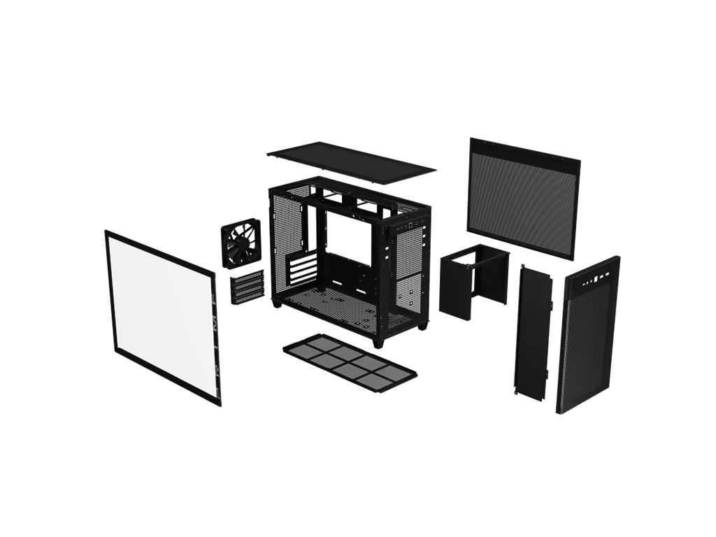Ena stranica je iz kaljenega stekla, ostale stranice ohišja pa so izdelane iz 1,5 mm lukenj, ki skupaj tvorijo mrežo, ki je učinkovita za zračenje, hkrati pa zmanjšuje vstop prahu in drugih delcev ter še vedno dovoljuje vpogled v komponente v notranjosti.