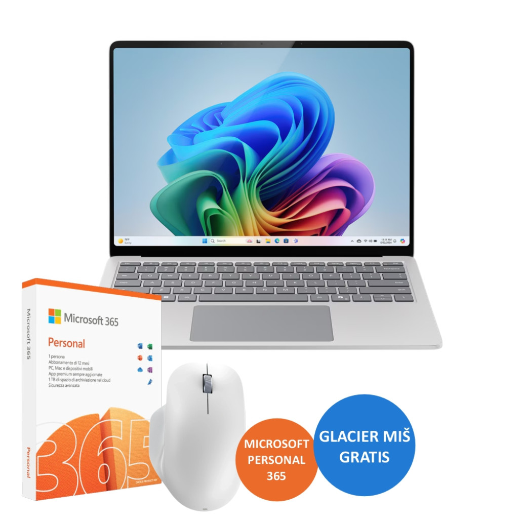 Prenosnik Microsoft 35,0 cm (13,8″) Surface Copilot+PC 2304×1536 OLED na dotik 600nit 120Hz Snapdragon® X Plus/256GB/SSD256GB/BL/ALU/Copilot+/Qualcomm Adreno GPU/Win11Home (ZGJ-00025-KPL)