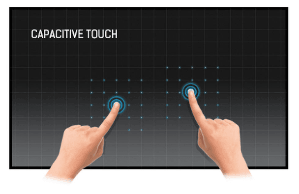 Kapacitivna tehnologija uporablja mrežo senzorjev iz micro žičk, integriranih v steklo, ki prekriva zaslon. Dotik se zazna zaradi spremembe električnih karakteristik mreže, ko se je dotakne človeš ki prst. Zaslon je zaščiten in zelo trpežen. Funkcionalnost na dotik ostane neokrnjena, tudi če je steklo opraskano.