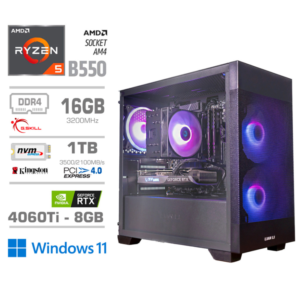 Računalnik MEGA MT S7X R5-5600X/RTX4060Ti-8GB/16GB/1TB-4.0/750W/Win11Home/črna RGB