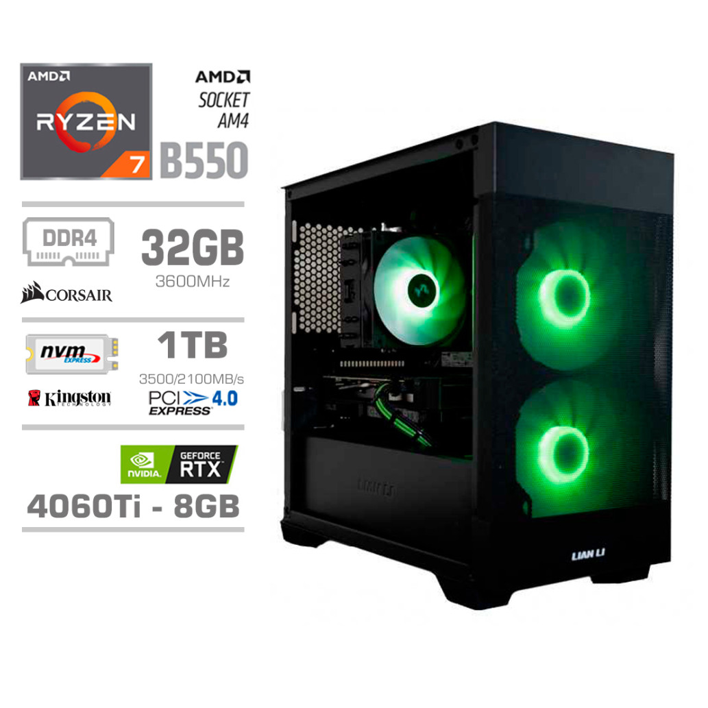 Računalnik MEGA MT S7X R7-5700X/RTX4060Ti/32GB/1TB-4.0/750W/Brez OS/črna RGB + Estetski napajalni kabli