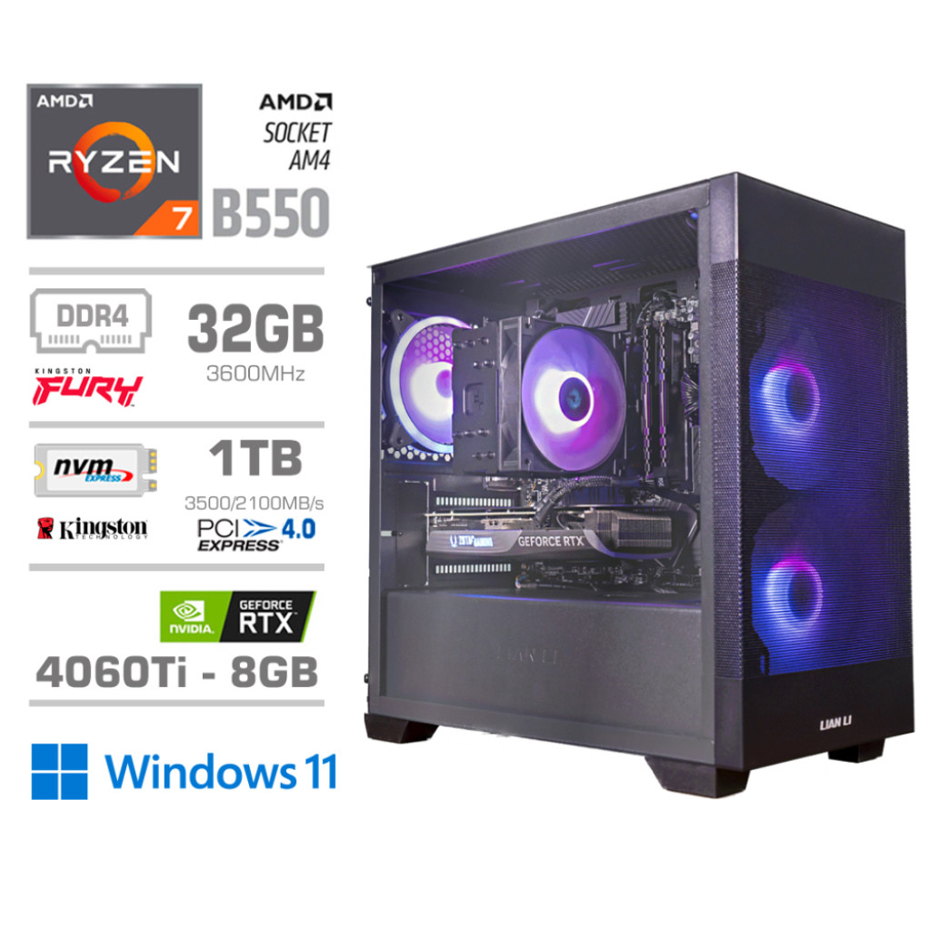 Računalnik MEGA MT S7X R7-5700X/RTX4060Ti-8GB/32GB/1TB-4.0/750W/Win11Home/črna RGB