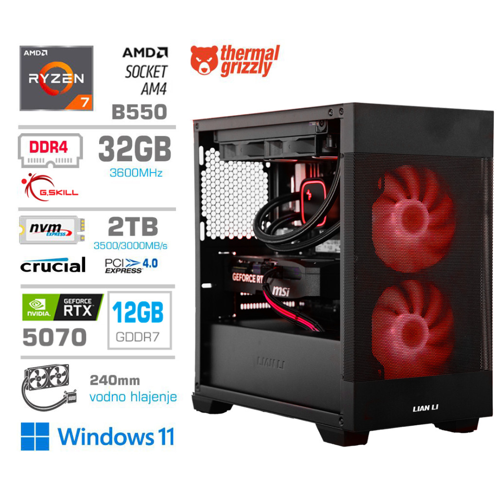 Računalnik MEGA MT S7X R7-5800X/RTX5070/32GB/2TB-4.0/750W/Win11Home/črna RGB + Estetski napajalni kabli [Rdeča / Črna]