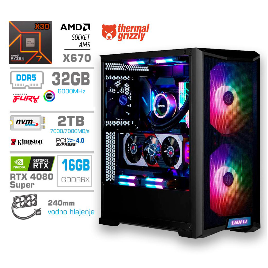 Računalnik MEGA TWR S10 R7-7800X3D/RTX4080 Super/32GB-DDR5/2TB-4.0/1000W/Brez OS/črna RGB