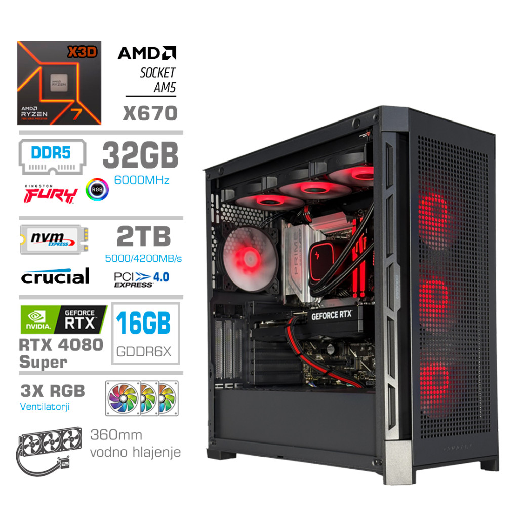 Računalnik MEGA TWR S11 R7-7800X3D/RTX4080 Super/32GB-DDR5/2TB-4.0/1050W/Brez OS/črna RGB + Estetski napajalni kabli [Rdeča / Črna]
