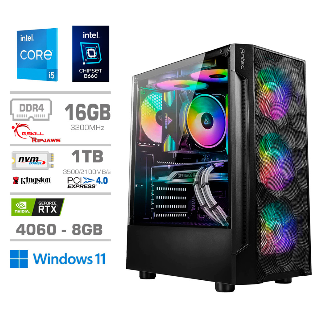 Z osnovo na B660 matični plošči, ta serija prinaša popolno ravnovesje med vrhunsko tehnologijo in izjemnimi možnostmi nadgradenj. Odprt svet prilagoditev čaka z možnostjo razširitve grafičnih kartic od RTX 3050 pa vse do impresivnega RTX 4070Ti Super, omogočajoč tako brezhibno igranje najnovejših iger kot tudi brezskrbno delo z grafično zahtevnimi aplikacijami.