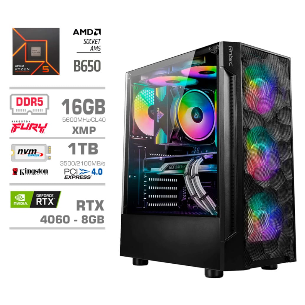 Računalnik MEGA TWR S7 R5-7600/RTX4060-8GB/16GB-DDR5/1TB-4.0/750W/Brez OS RGB