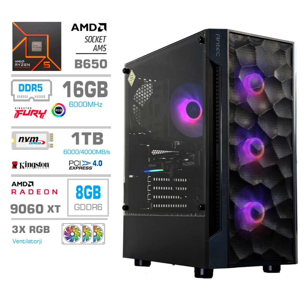 Računalnik MEGA TWR S7 R5-7600X/RX9060 XT/16GB-DDR5/1TB-4.0/750W/Brez OS RGB