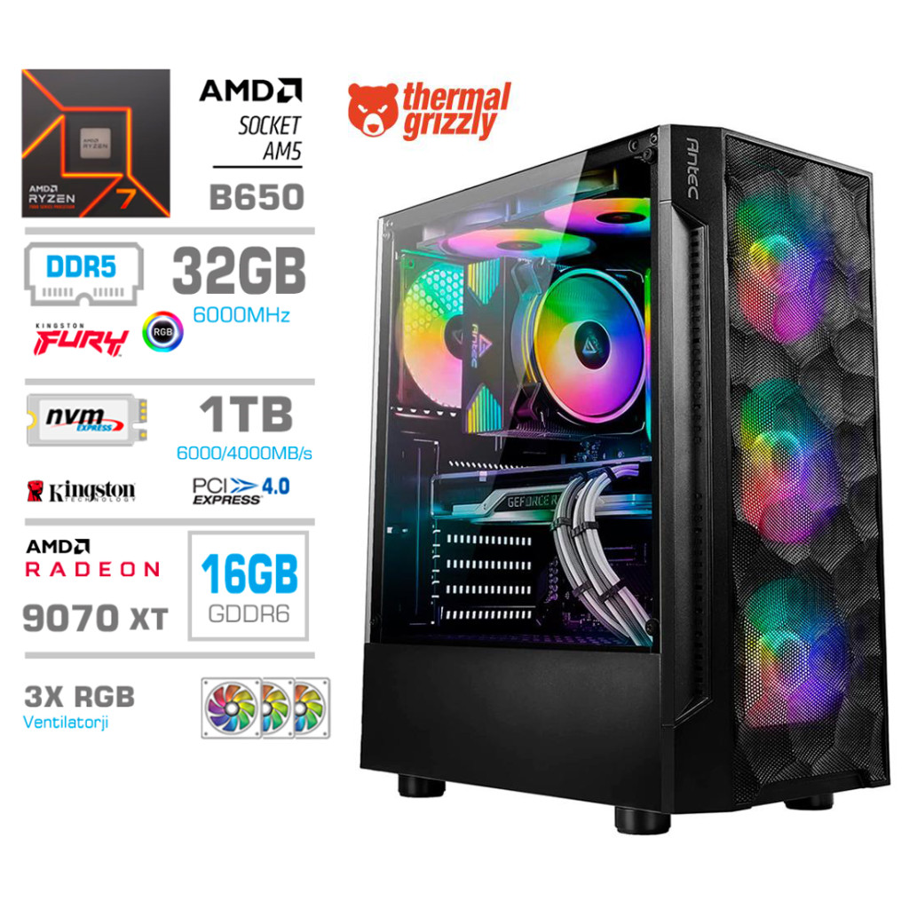 Računalnik MEGA TWR S7 R7-7700X/RX9070 XT/32GB-DDR5/2TB-4.0/750W/Brez OS RGB