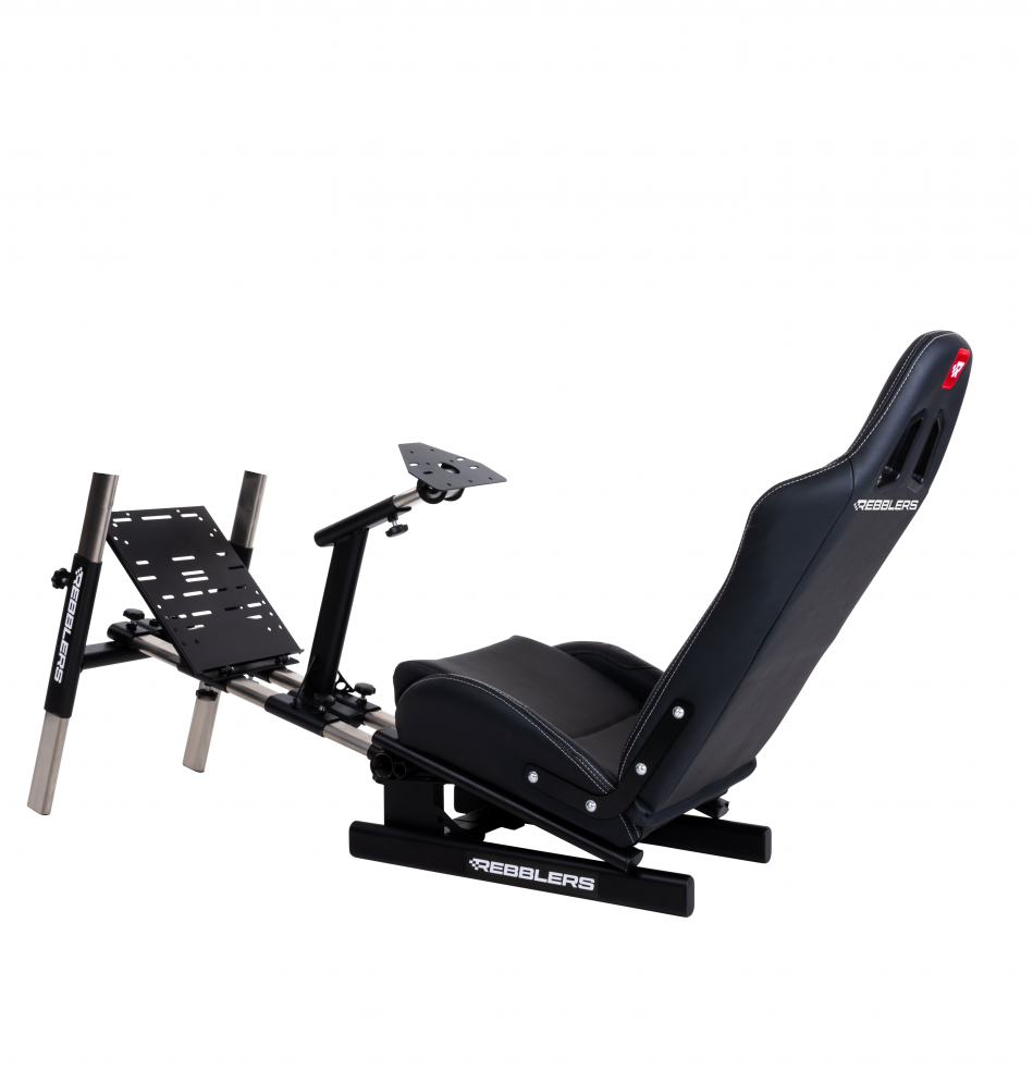 Zaradi številnih možnosti nastavitve bo vsak dirkač v tem sedežu našel popoln položaj. Okvir je sestavljen iz 4 teleskopov iz nerjavnega jekla, uporaba več teleskopov in varjene ojačitve v vseh vogalih pa ustvarja izjemno stabilen okvir. REBBLERS PRO RACING SEAT je morda najbolj stabilen simulator, ki je na voljo v svoji kategoriji! Dva teleskopa se uporabljata za namestitev krmilnega stebrička in pedal. Druga dva teleskopa predstavljata opornike, na katere je mogoče namestiti nosilec za televizor (ni neobvezno). Na teleskopska držala je mogoče namestiti več dodatkov, vključno z nosilcem »Butkicker« ali nosilcem prestavne ročice.