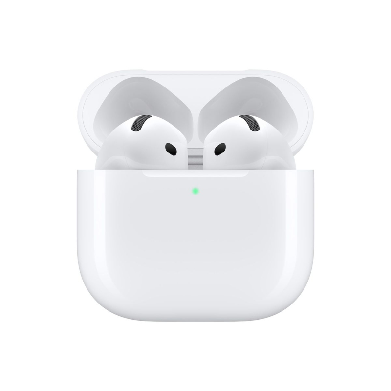 PRENOVLJENI ZA UDOBJE — AirPods 4 so bili preoblikovani za izjemno celodnevno udobje in večjo stabilnost. Z izpopolnjenimi obrisi, krajšim steblom in hitrimi kontrolami za glasbo ali klice.