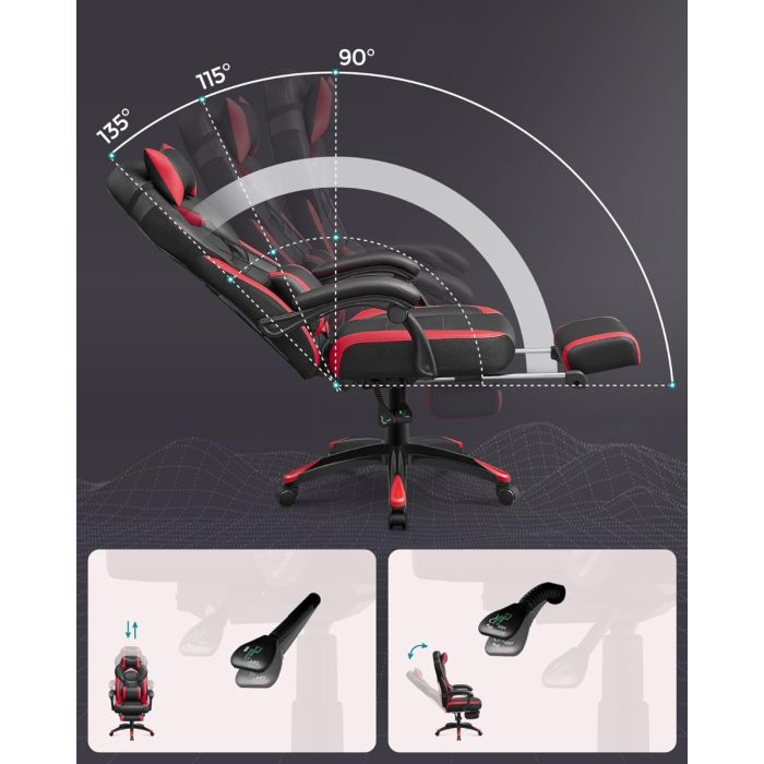Doživite vrhunsko udobje z večfunkcijskim stolom SONGMICS OBG77BR, zasnovanim za vse, ki veliko časa preživijo za računalnikom – bodisi pri delu, učenju ali igranju. S svojim športnim videzom v črno-rdeči kombinaciji, nastavljivim naslonjalom (od 90° do 135°), izvlečnim podnožjem in dodatnima blazinama za vrat in ledveni del poskrbi za ergonomsko podporo in sprostitev. Prevleka iz umetnega usnja v kombinaciji z zračnimi tekstilnimi površinami zagotavlja udobje in preprosto vzdrževanje, medtem ko polnilo iz pene visoke gostote in robustno podnožje zagotavljata trpežnost. Stol omogoča 360° vrtenje, je nastavljiv po višini in ima tiha kolesca, primerna za vse vrste tal.