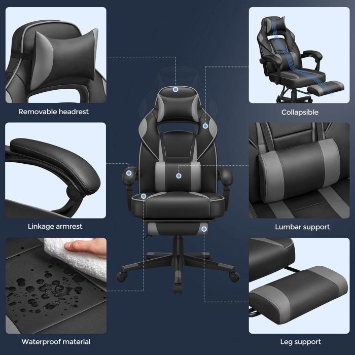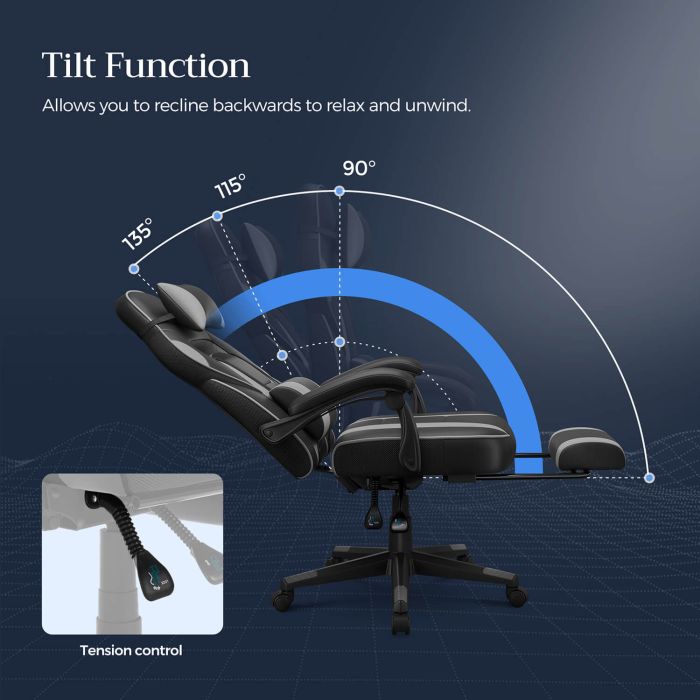 Neskončno udobje: ta nazaj nastavljiv igralni stol ima ledveno blazino, oporo za noge, vzglavnik in tiha kolesa, tako da se lahko vaše telo sprosti.