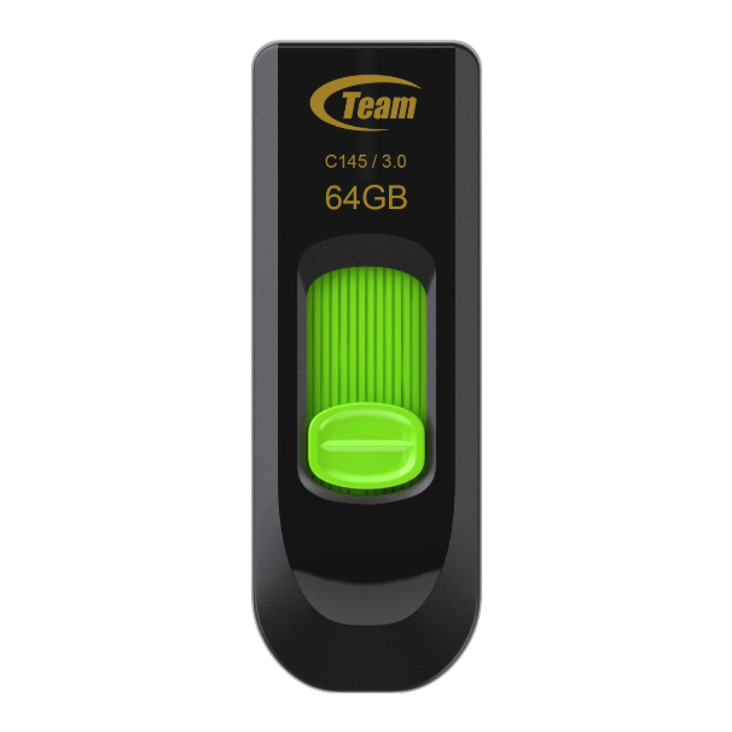 Spominski ključek 64GB USB 3.1 Teamgroup C145 – plastičen/drsni/črn (TC145364GG01)