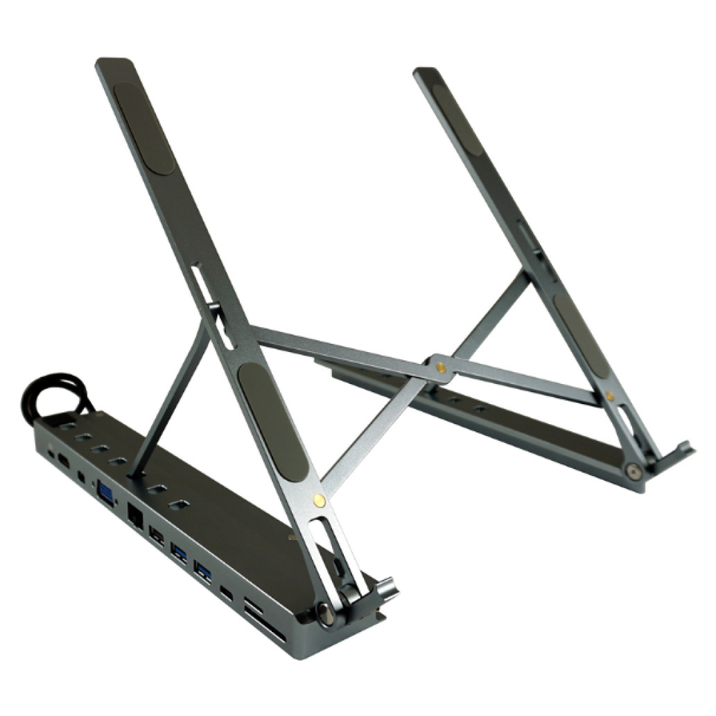 Stojalo za prenosnik USB-C z multihubom LC Power HDMI Mini-DisplayPort VGA USB USB-C 100W LAN Audio (LC-HUB-C-MULTI-STAND)