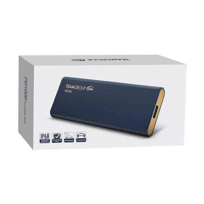PD1000 serija zunanjih SSD diskov z ultra hitrim prenosom podatkov bo navdušila še tako zahtevnega uporabnika. USB3.2 Gen2 standard nove generacije bo poskrbel za najhitrejši prenos podatkov doslej. Hitrost branja in pisanja dosega tudi do 1000 / 900 MBs! Diski serije PD1000 so zelo odporni tako na pritisk, vodo in prah, kar dokazuje IP68 certifikat. MIL-STD 810G 516.6 vojaški standard pa disk še dodatno ščiti pred padci tako, da vam za izgubo podatkov ni potrebno skrbeti.