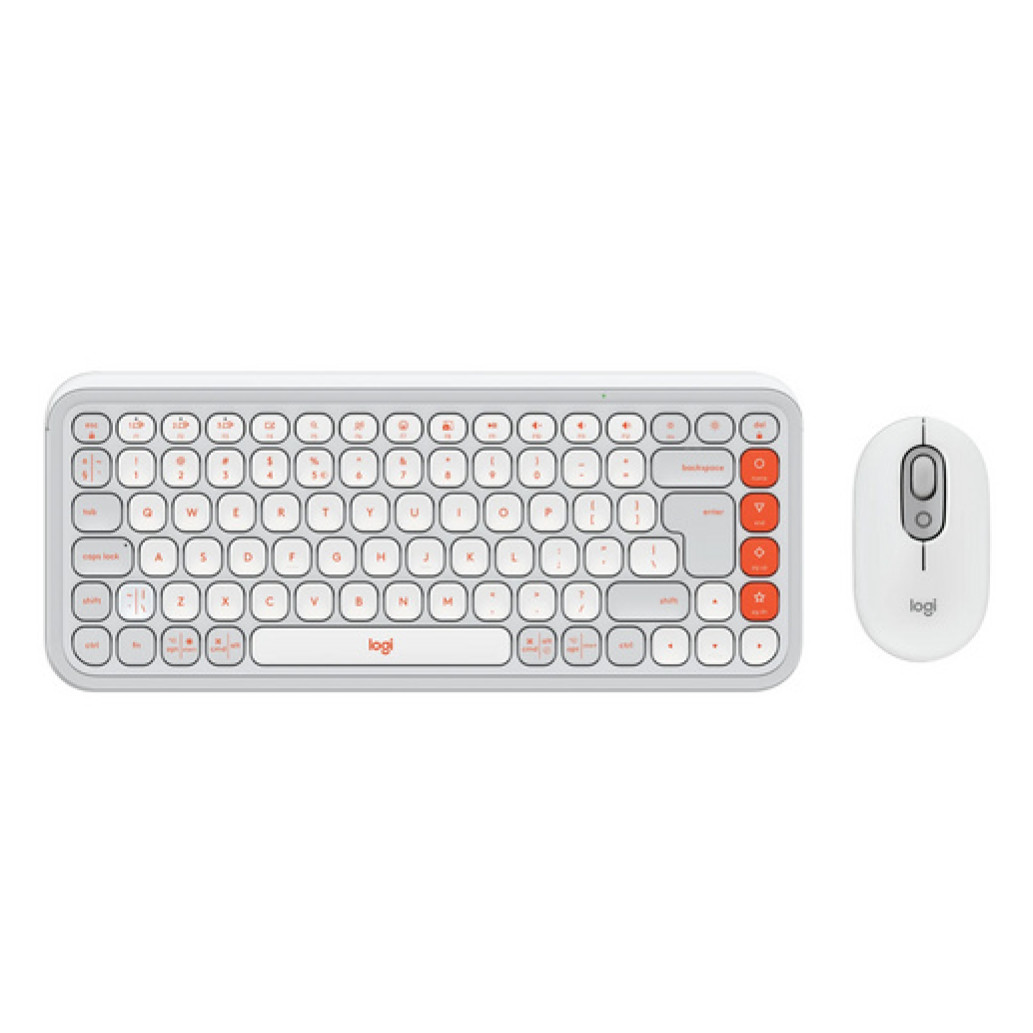 Tipkovnica in miš Logitech brezžična + Bluetooth POP Icon Combo US international bela tiha SLO gravura (920-013141)