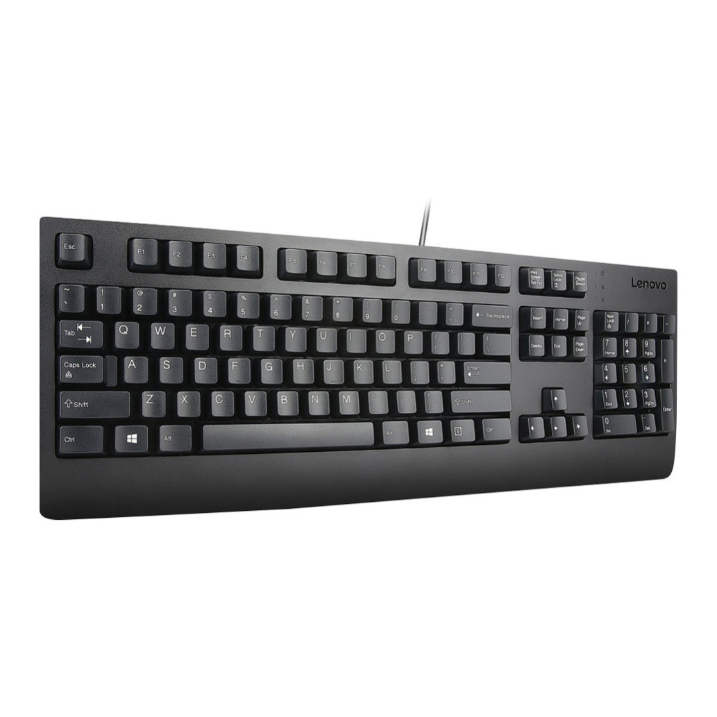Lenovo Preferred Pro II Faktor oblike tipkovnice: polna velikost (100 %). Stil tipkovnice: ravna. Tehnologija prenosa: Žični, vmesnik naprave: USB, Postavitev tipkovnice: QWERTZ. Naslon za zapestje. Priporočena uporaba: univerzalna. Barva izdelka: črna
