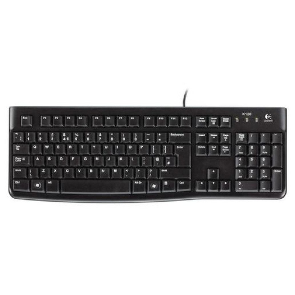 Logitech K120. Faktor oblike tipkovnice: polna velikost (100%). Stil tipkovnice: ravna. Tehnologija prenosa: Žični, vmesnik naprave: USB, Postavitev tipkovnice: QWERTZ. Dolžina kabla: 1,5 m Barva izdelka: Črna