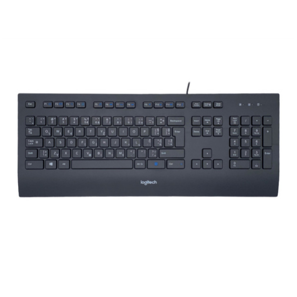 Logitech tipkovnica K280e za podjetja. Faktor oblike tipkovnice: polna velikost (100%). Stil tipkovnice: ravna. Tehnologija prenosa: Žični, vmesnik naprave: USB, Postavitev tipkovnice: QWERTY. Naslon za zapestje. Priporočena uporaba: pisarna. Barva izdelka: črna