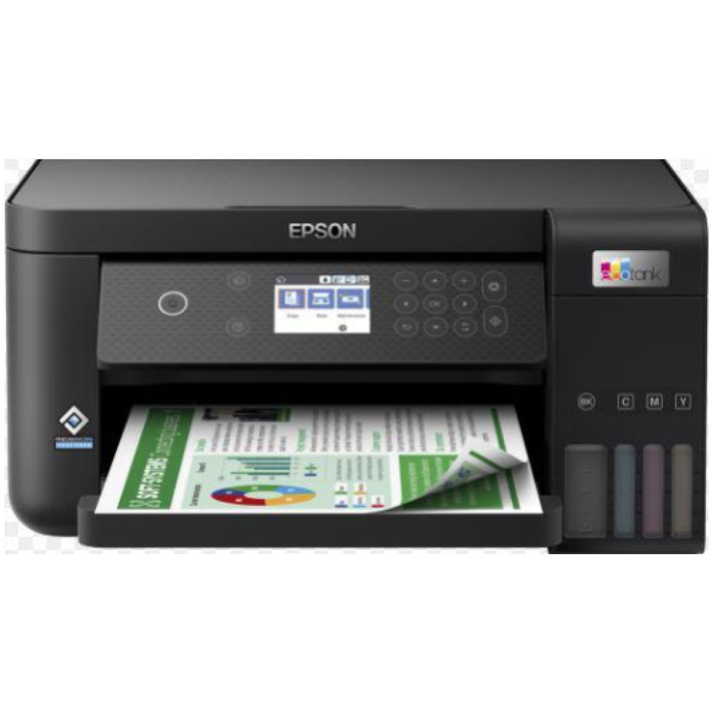 TISKANJE BREZ KARTUŠ! Znižajte stroške tiskanja z Epsonovim tiskalnikom EcoTank L6260. Nova serija tiskalnikov brez kartuš, s priloženimi črnili omogoča, da natisnete do 14.000 črno-belih in 5.200 barvnih strani, kar vam zagotavlja izjemno nizek strošek tiskanja na stran. MF naprava Epson L6260 je namenjena tako poslovni kot tudi domači uporabi.