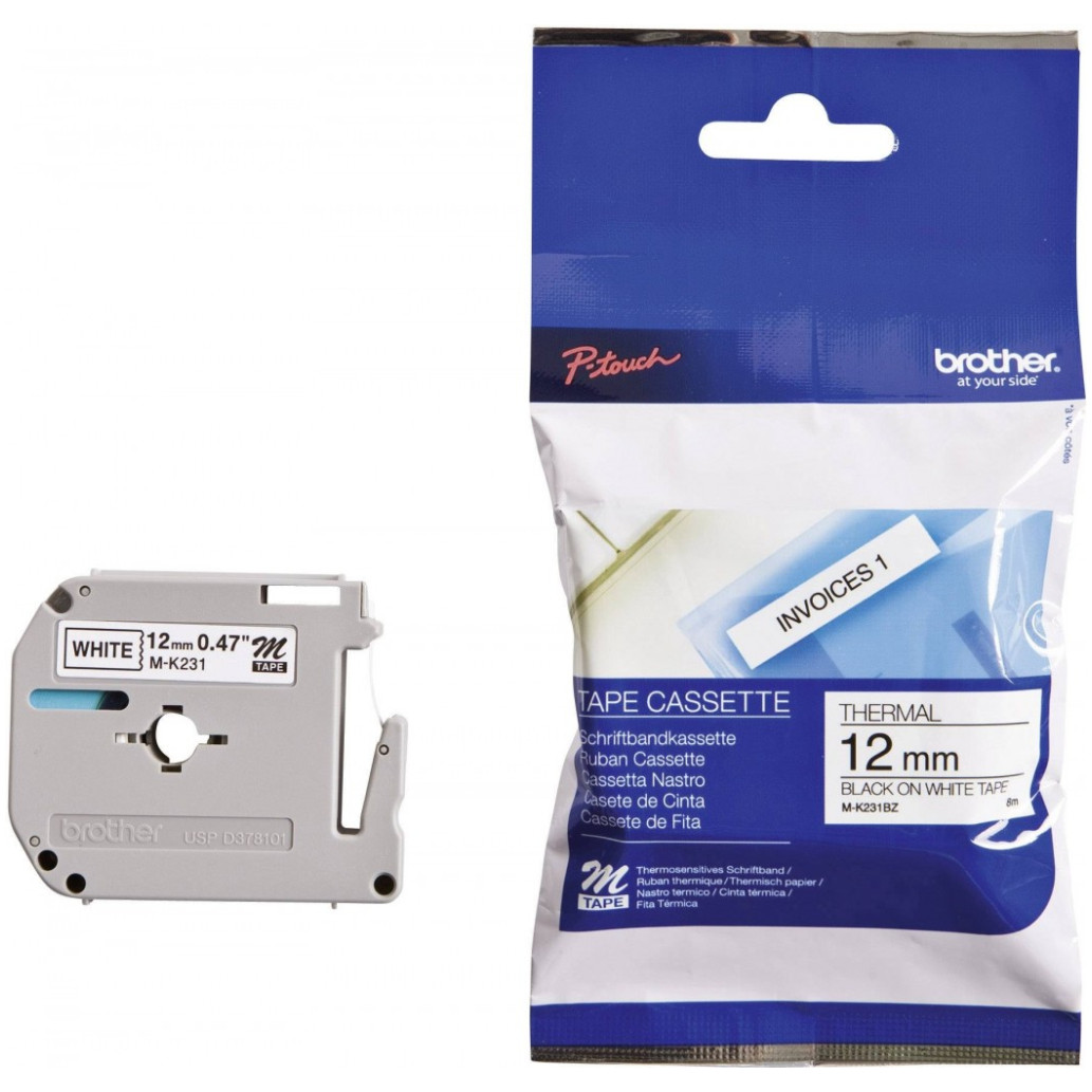 Kakovostni termalni MK Brother trak, širine 12mm in skupne dolžine 8m. Trak je bele barve in omogoča potisk v črni barvi…
