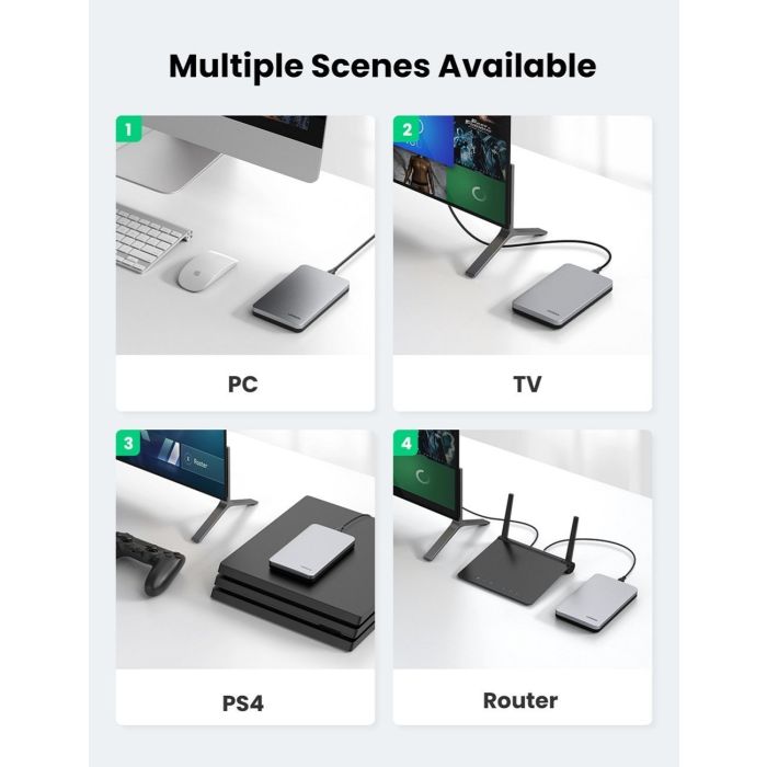 Ugreen 2.5 SATA ohišje za disk srebrn + USB-C-USB-A kabel – box