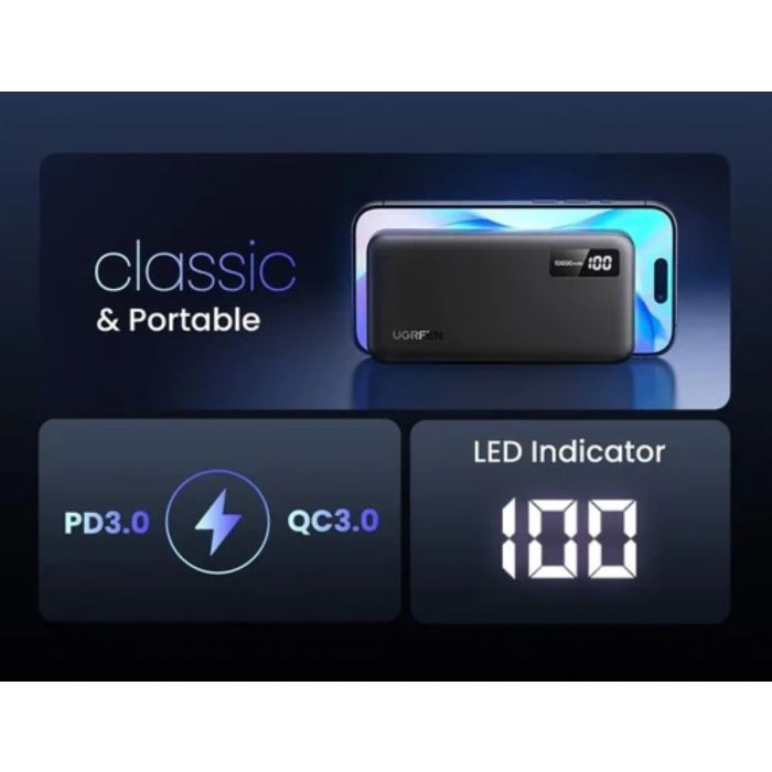 Ugreenov prenosna baterija ima kapaciteto 10000 mAh, ki lahko zagotovi približno 2 polnjenji navadnega mobilnega telefona.